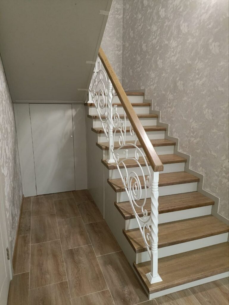 Очень распространенный прием при изготовлении лестниц – это комбинация дерева и металла. Эстетичность, надежность, прочность, разнообразные цветовые и дизайнерские решения определили популярность конструкций на металлокаркасе с облицовкой натуральным деревом.